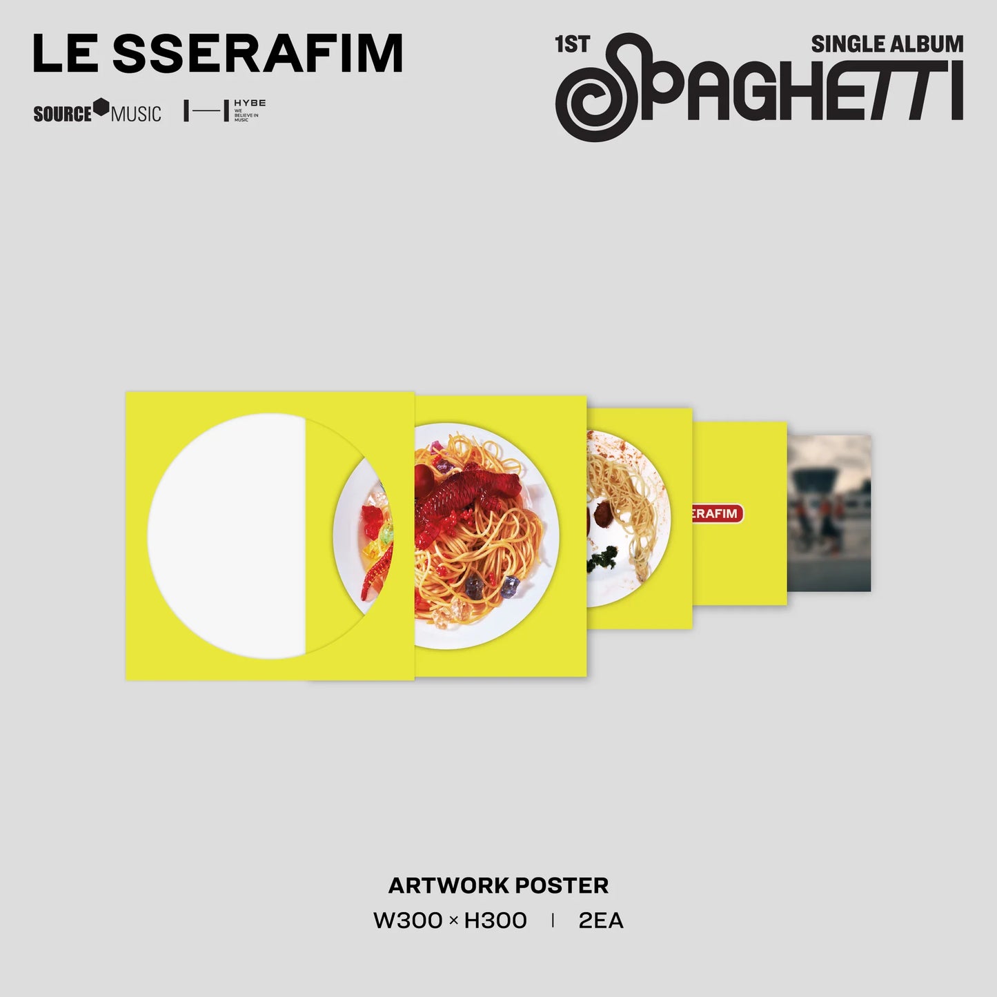 Following the release of their first single album 'SPAGHETTI', LE SSERAFIM (KIM CHAEWON, SAKURA, HUH YUNJIN, KAZUHA & HONG EUNCHAE) presents a collectible special vinyl featuring seven tracks. Available in two vinyl disc colors – Tomato Red and Neon Yellow.